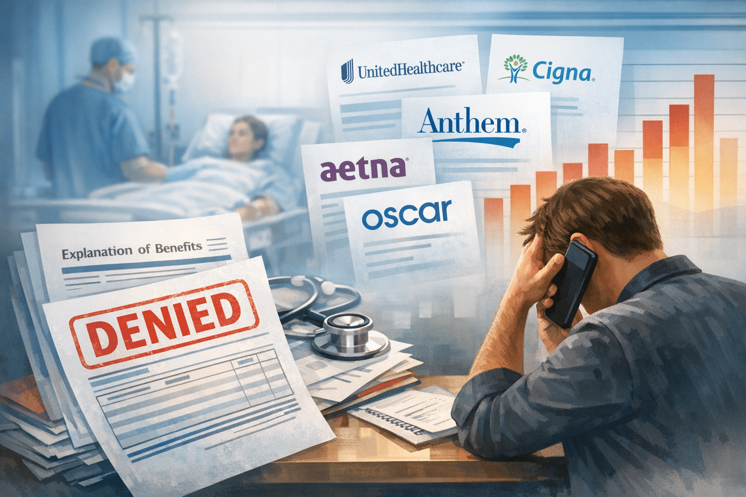 • Claims denial rates among major carriers range from 18% to 25% — meaning roughly one in five to one in four claims is initially denied.1